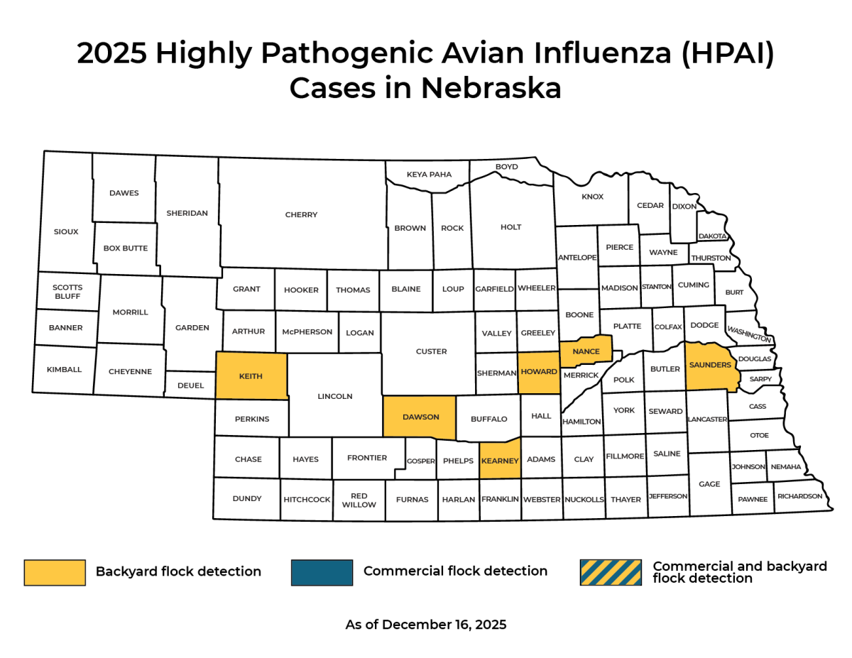 *Genome Sequencing has determined that all poultry HPAI cases in Nebraska have been from wildlife introductions.